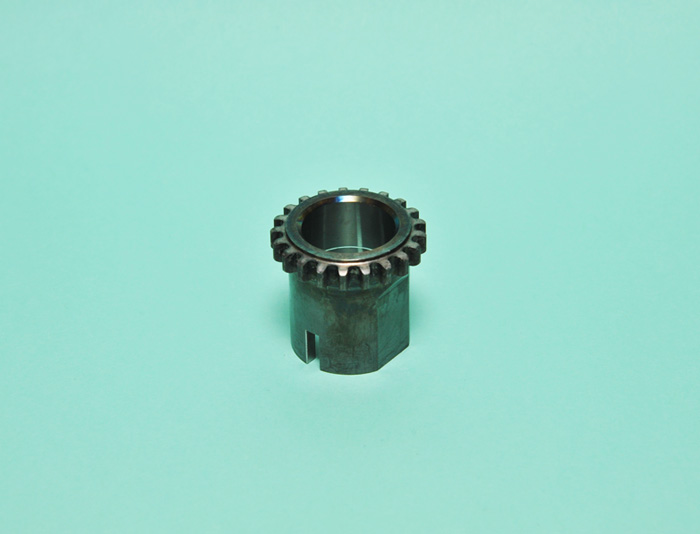 2輪駆動から4輪駆動に切り換えるデフ用ギア部品です。セレーション・ギア・チャンファ加工は冷間鍛造で成形しており、 高信頼性、低コスト化に貢献しております。